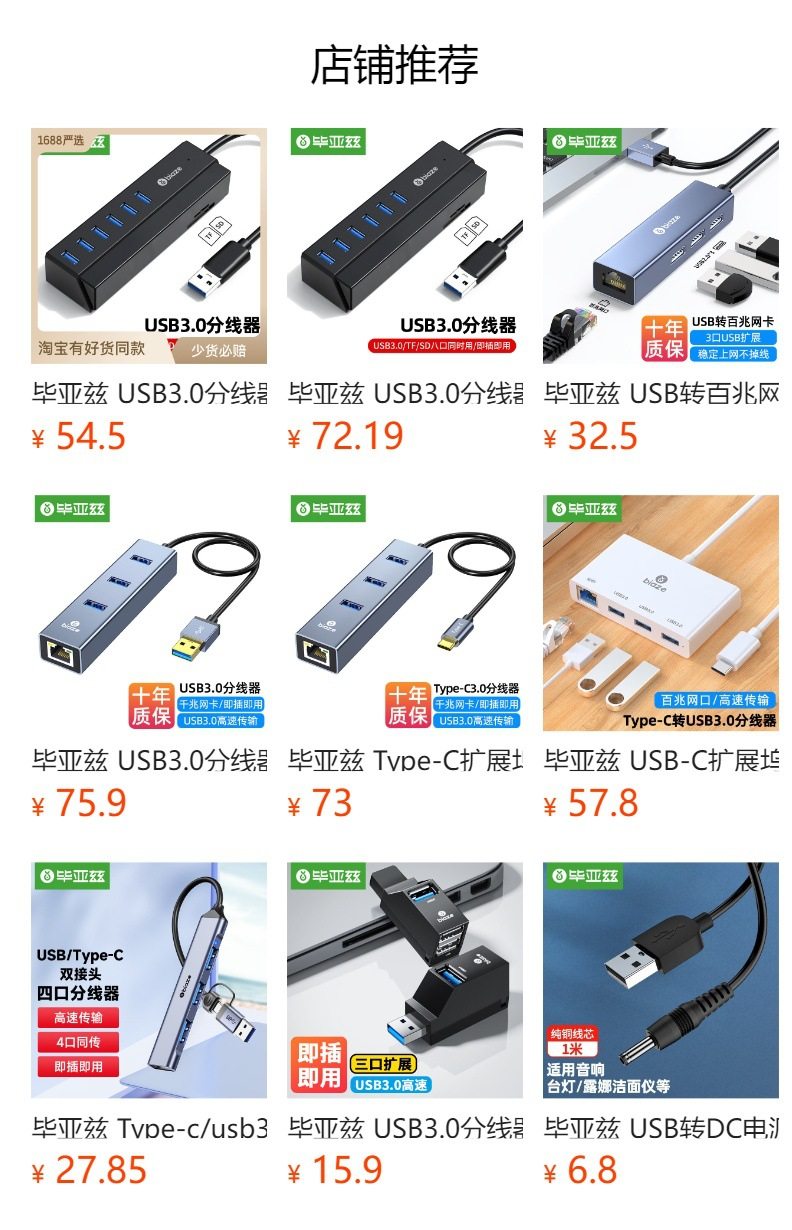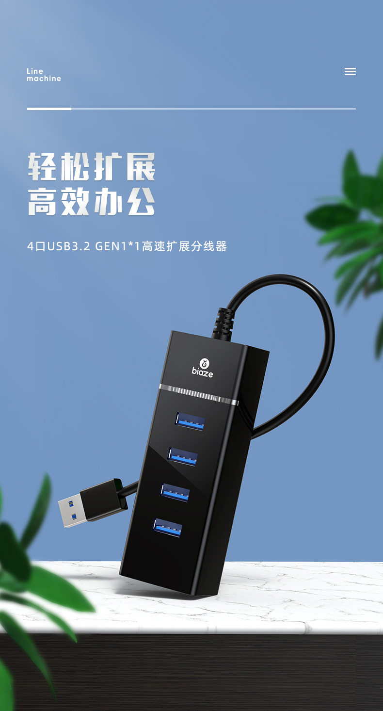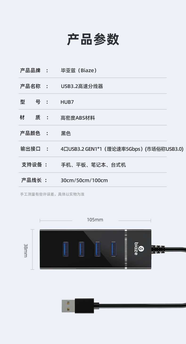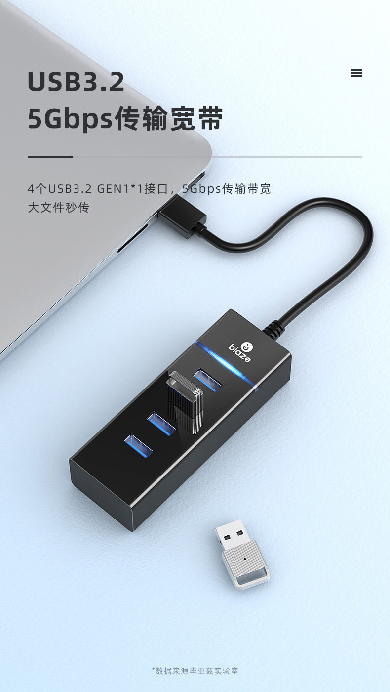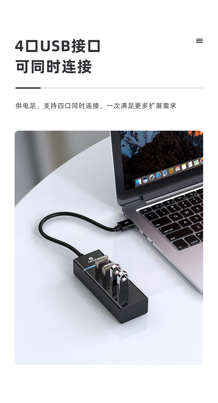 Biaz USB splitter USB3.0/3.2 high-speed one-to-four multi-interface computer docking station hub cable